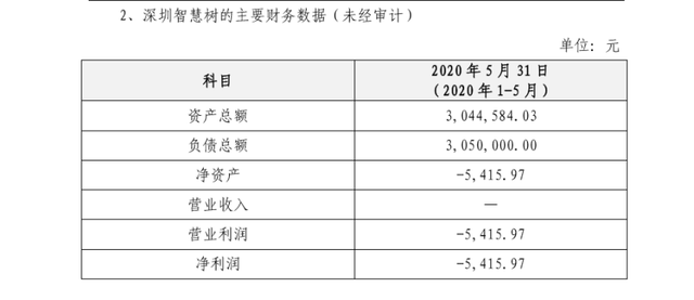 在公告中,新利官方网站-新利(中国)科技披露了深圳智慧树的主要财务数据(未经审计),如下图所示。